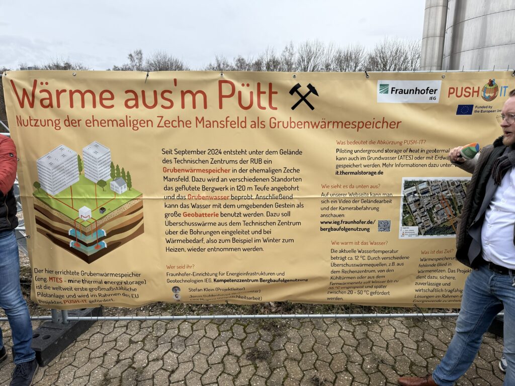 Das Internationale Geothermiezentrum Bochum und Fraunhofer IEG veranstalteten am 6. Februar 2026 in Bochum einen Workshop zur Grubenwassergeothermie. Zur Eröffnung konnten mehr als 50 interessierte Teilnehmer begrüßt werden. Es folgten fünf Impulsvorträge, die sich mit mit den verschiedensten Projekten der Bergbaufolgenutzung, Grubenwassergeothermie, technischen und rechtlichen Fragestellungen auseinander setzten. In der anschließenden Diskussionsrunde bestand die Möglichkeit dazu Meinungen, unterschiedliche Perspektiven, Chancen und Risiken des Themenfeldes auszutauschen. Der Zugang zu einem gefluteten Bergwerk und die Besichtigung des Bohrplatz am Technischen Zentrum der Ruhr-Universität im Rahmen eines aktuellen Projektes bildete den Abschluss.